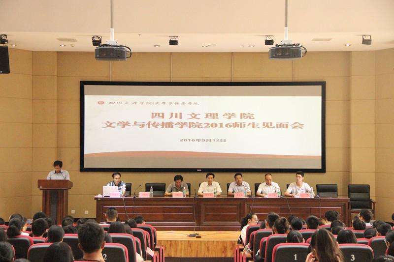 9月12日下午3:00,在学校上午举行的2016级新生开学典礼的基础上,文学与传播学院在图书信息大楼报告厅A厅召开了2016级新生师生见面会。学校原校长孟兆怀教授、现任副校长李壮成教授、原副校级调研员成良臣教授、部分在我院任课的机关部门领导和老教授、我院的全体老师及2016级全体同学参加了会议。会议由学院党总支书记赵定贵主持。