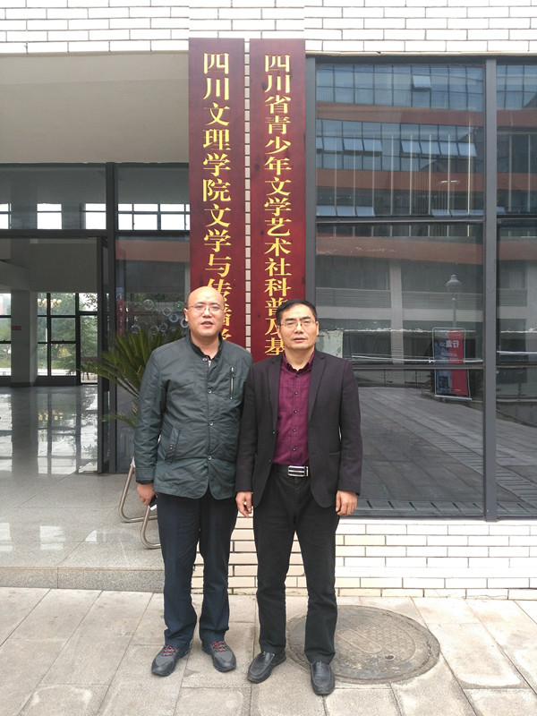 2017年11月4日,内江师范学院廉洁文化普及基地主任李先敏教授到青少年文学艺术普及基地考察学习,李博士与文学艺术普及基地主任彭金祥教授进行了长时间的交流学习活动。