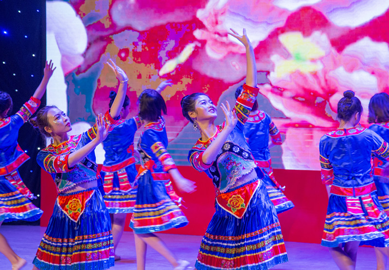 晚会涵盖了歌曲、舞蹈、朗诵、小品等多种表演形式,红歌合唱《红色年代》体现了革命时期英雄人物坚强不屈、奋勇抗争的拼搏精神;刚柔并济的古典舞《青蛇》上演了一场荡气回肠的的神话恋歌;充满民族特色的傣族舞蹈《喜水》则将祝福传递给观众朋友;饱含深情的集体朗诵《青春中国》表达了对伟大祖国深深的热爱;而《创意走秀》将现场气氛推向新的高潮。相声和小品在为观众带来欢笑的同时,也引发观众对人性的思考。《舞舞相约》的热辣、《尔玛》的风情无不惹得现场尖叫连连。最后,晚会在教师合唱《凤凰欲飞》和《祖国不会忘记》铿锵有力的歌声中缓缓落下帷幕。