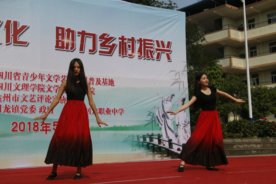 2018年5月15日下午,四川省青少年文学艺术社科普及基地联合达州市文艺评论家协会和四川文理学院文学与传播学院与回龙镇党委、政府和开江县回龙职业中学共同呈现一场以“弘扬传统文化,助力乡村振兴”为主题的送文化下乡活动,在开江县回龙职业中学成功举办。