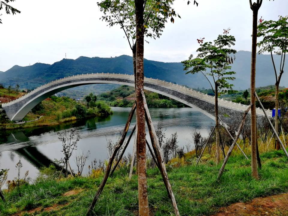 上午十点,环湖健身活动正式开始。老师们或跟随众人一道,或三三两两结伴而行。首先走过木板桥,一位老师牵着儿子的小手走在木板上时用力地踩木板,发出咚咚的声音,伴随着母子俩的笑声,构成了一幅温馨的画面。在这里,今天她不仅是一位老师,更是一位母亲。工会就是这样一个能让大家感受到温暖的组织,希望组织这样的活动,让大家在繁忙的教学工作之余放松自己。一路前行,道路两旁有各种各样的树木,比如栾树、香樟树、沙树等。小朋友们活力四射,总是冲在最前面,还时不时爬一爬小山坡,摘摘苍耳,玩得不亦乐乎。慢慢地走到了映月桥边,那一条弯月般的长拱桥横跨湖面,在水中呈现出月牙般的倒影,配上波光粼粼的湖水,美不胜收。使得彭金祥老师忍不住和其他老师进行了合影留念。