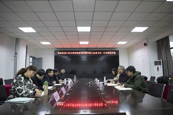 为加强高校二级学院间的交流合作,提高办学水平,11月27日下午15:00分,兰州文理学院新闻传播学院院长王金寿教授一行三人到我院进行考察交流。文传学院院长杜松柏、党总支副书记、副院长张桢老师、副院长彭金祥、党政办公室主任王文娟以及各专业教研室主任参会。