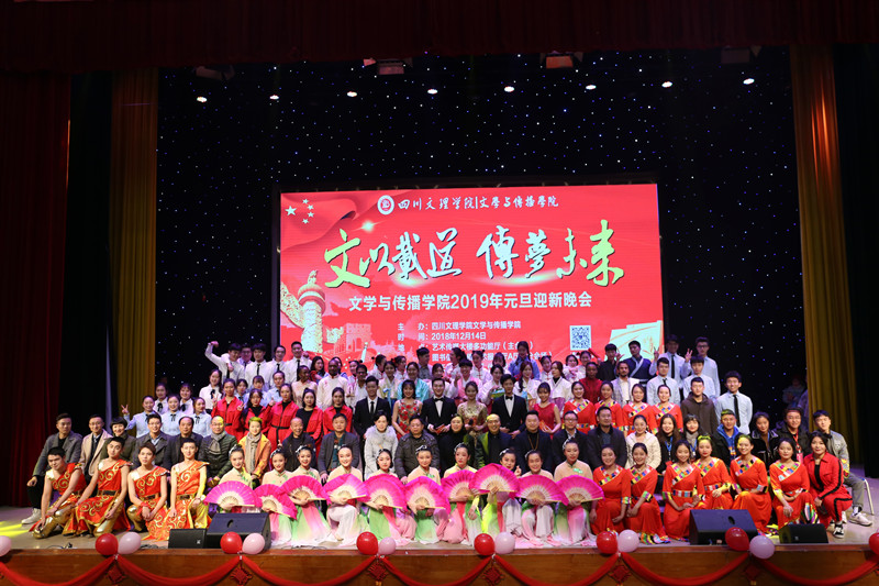 一元复始,万象更新,文以载道,传梦未来。2018年12月14日晚,由文学与传播学院主办的“文以载道·传梦未来”2019年元旦迎新晚会在艺术传媒大楼多功能厅浓情上演,图书信息大楼学术报告厅A厅作为分会场进行实况转播。本次晚会共分为“绘四十年改革华卷”和“书七十载建国新篇”两大篇章,为我们带来一场缤彩纷呈的视听盛宴。学校副校长邓杰教授、市广播电视台、市文化馆、市摄影家协会、学校职能部门等应邀出席晚会,学院全体师生观看本场晚会。