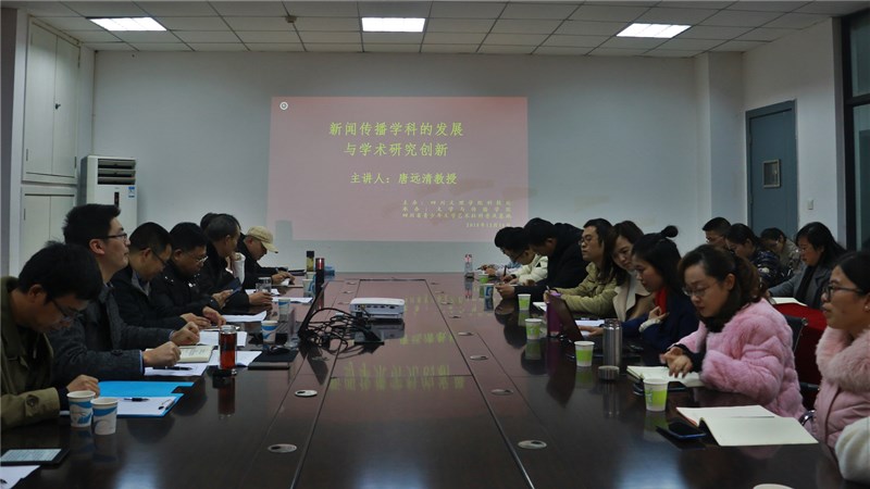 为进一步贯彻落实学校第一次党代会精神,实现学校向多科型、应用型转型发展,使文学与传播学院率先成为学校转型发展的排头兵,12月15、16日,学院先后邀请中国新闻史协会常务理事、重庆工商大学艺术学院院长殷俊教授,中国传媒大学媒介评议与舆论引导研究中心主任、海南国际分校筹备处副处长唐远清教授莅临我校,分别作了《我国新闻视频的创新模式及对策》、《新闻传播学科发展与学术研究创新》学术讲座以及“学术方向的凝练与国家社科项目申报”座谈交流会。科技处长程碧英、学院院长杜松柏、学院党总支书记赵定贵、副院长彭金祥、副院长兼副书记张桢、全院教师及学生代表等共同参与了讲座及会议,与专家沟通交流。