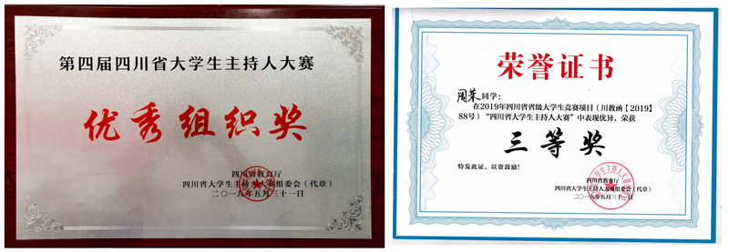 5月31日下午,由四川省教育厅主办、西华师范大学承办的第四届四川省大学生主持人大赛在西华师范大学华凤校区演播厅圆满落幕。此次比赛共有来自全省多所高校的131名选手参加,我校文学与传播学院播音与主持艺术专业共选派6名选手参加比赛并取得佳绩,其中2017级的周茉同学荣获三等奖,我校荣获优秀组织奖。