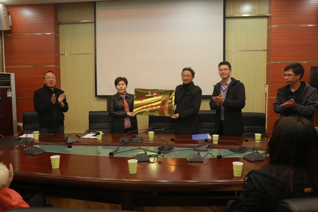 在四川城记会展服务有限公司举行的实践教学基地授牌仪式上,夏小军总经理感谢学院培养输送了优秀人才,介绍了公司的基本情况、会展行业发展现状,并高度评价赞扬了我院文化产业管理专业实习生的工作表现。他表示,今后双方要加大交流沟通,进一步提高人才培养的与社会需求的契合度。曾宪文围绕“校企合作、协同育人”的主题,对高校和企业深度长期合作的意义进行了探讨,他强调,实践教育基地是学生实习的重要平台,是建设优势特色专业的重要环节,希望今后加强校企合作。张桢建议,在以后的专业教学中,课程实践实训项目可以从企业的一些项目需求中产生,一方面锻炼学生的专业实践实战能力,另一方面可以丰富教师的教学案例并与企业开展深度合作。实习学生代表熊津钰和侯佳欣分别汇报了在实习期间的工作内容和心得体会,她们都一致认为,毕业实习是大学学习阶段中重要的一环,通过实习让她们掌握到了更多的行业前沿知识和实战技巧,对自己的专业学习和发展有很大的促进。