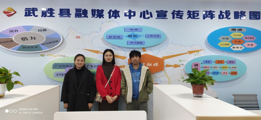 在大竹、宣汉、武胜县广播电视台、重庆万盛区融媒体中心,各电视台台长、融媒体中心主任率领领导班子成员和部门负责人热烈欢迎学院领导和师生的到来,参观了各融媒体中心的建设和运营情况,介绍了各基地的最新发展变化,并对近几年与我院的良好合作和学生来基地的实习就业情况给予了充分肯定和高度赞扬,期待进一步加强交流与合作。教务处副处长丁庆刚、学院院长曾宪文分别代表学校、学院感谢各实践教学基地对文传学院相关专业毕业实习工作提供的大力支持,介绍了学校和学院近年来取得的新发展和学科专业建设新成就,并就今后深化校台合作事宜进行了深入洽谈,形成了共识。学院副院长张桢、广播电视艺术教研室主任何斌、实验室主任陈海平、播音与主持专业负责人张家琪就实习方式的多元化、融媒体时代各专业人才新需求、2020版人才培养方案的修订等方面进行了沟通交流和行业调研。