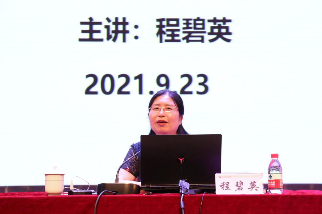 最后,程碧英教授对在座师生提出三点要求与大家共勉。要弘扬伟大建党精神,推进高水平应用型大学建设;要传承中华优秀传统文化,涵养高尚的人文品格;要与时俱进,不断提升专业能力,为学校事业发展奉献青春力量。