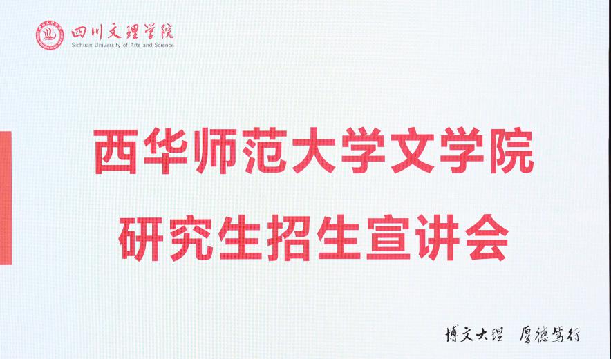 为了让准备考研的同学能够明确自己的考研方向,坚定考研同学的考研目标,同时引领低年级的同学为自己的考研道路提前做好准备。9月24日,四川文理学院文学与传播学院有幸邀请到西华师范大学文学院的相关教授为学院有意向考研的同学进行硕士研究生招生宣讲会,会议在四川文理学院多功能展厅顺利开展。