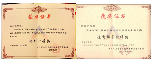 10月27日,由第七届四川省大学生原创微电影大赛暨高端学术论坛在成都锦城学院圆满落幕。本次活动由四川省教育厅主办,成都锦城学院承办,以 “微电影创作与实践” 为主题,我院学生杨少钦荣获论文一等奖,教师刘长宇荣获优秀指导老师奖。