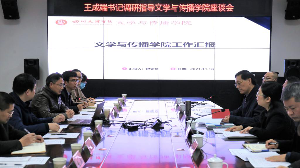 11月18日上午,学校党委书记王成端来到文学与传播学院调研学科专业建设,副校长程碧英及党委办公室、教务处、人事处、科技处负责人一同调研,文学与传播学院党政班子成员及教师代表参加调研座谈会。