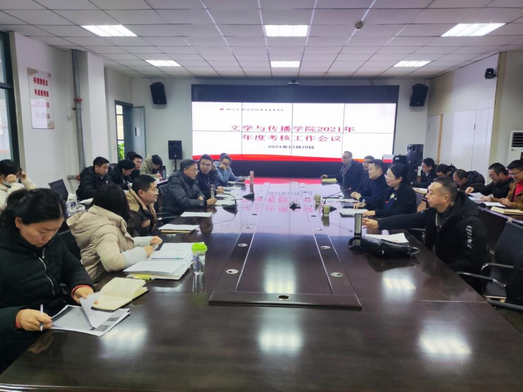 12月29日,文学与传播学院在1007会议室组织召开了2021年度全体教职工考核工作会议。副校长程碧英、评估处处长文学运出席会议进行督导,学院院长曾宪文主持会议。