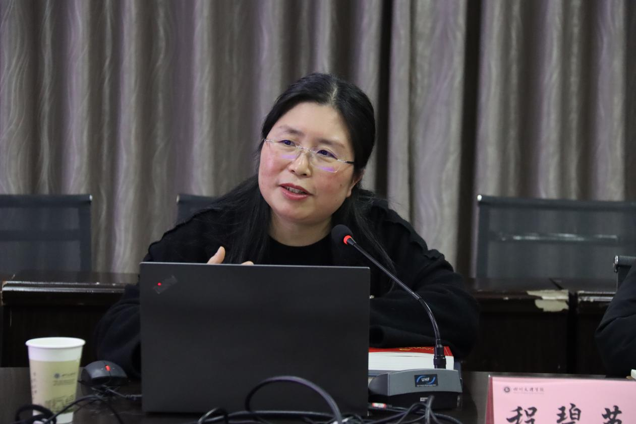 1月5日晚,党委常委、副校长程碧英教授在莲湖校区艺术传媒楼1007会议室为文学与传播学院、外国语学院、教务处等部门师生宣讲党的十九届六中全会精神。文学与传播学院党总支书记冉林主持宣讲会。