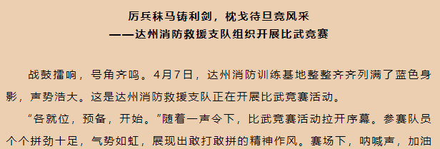此次培训强调理论与实践的紧密结合,学员结业考核采用理论考试与消防宣传比武竞赛相结合的方式,共产生电视新闻11条,新闻图片243幅,新闻消息27则。从考核结果来看,参训学员的新闻制作与采编水平有了显著提升,新闻宣传能力得到进一步加强,为达州市消防宣传队伍培养了骨干力量。