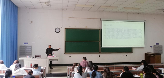 4月25日上午,应四川师范大学文学院的邀请,我院教师曾宪文教授在川师狮子山校区七教楼为文学院学子作了题为“诗人·青春·抒情时代——《生活在别处》雅罗米尔形象分析”的学术讲座。讲座由四川师范大学文学院谭光辉教授主持。