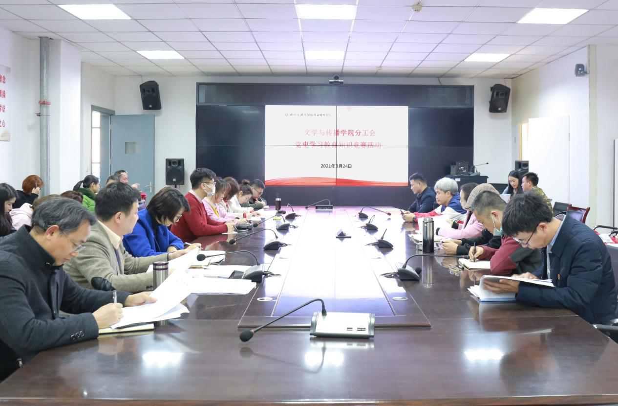 为热烈庆祝党的百年华诞,回顾中国共产党百年光辉历程,3月24日下午,学院分工会在艺术传媒大楼1007会议室举行党史学习教育知识竞赛活动,党总支书记冉林组织全体教职工参加此次活动。