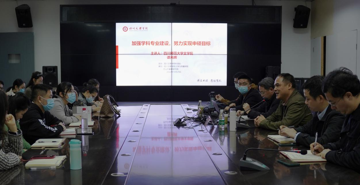 10月29日,四川文理学院文学与传播学院学术院长、四川师范大学文学院副院长谭光辉教授受邀为四川文理学院文学与传播学院师生作题为《加强学科专业建设、努力实现申硕目标》的讲座。此次讲座由文学与传播学院院长曾宪文主持。