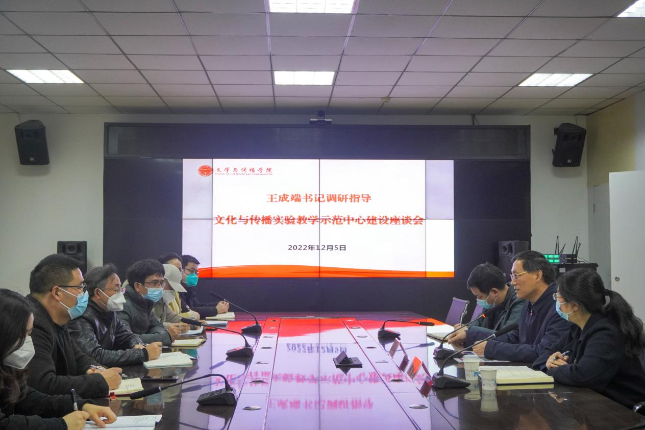 12月5日,四川文理学院党委书记王成端,党委常委、副校长程碧英一行来到文学与传播学院进行实验教学示范中心建设实地调研。