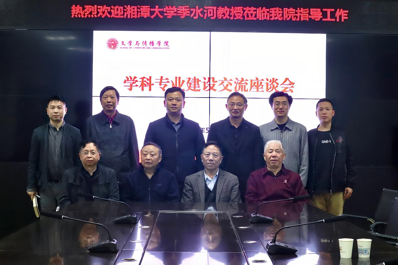 为丰富主题教育形式,促进学院高质量发展,5月9日下午,文学与传播学院召开座谈交流会,邀请湘潭大学季水河教授指导学院学科专业建设和申硕工作。季水河教授围绕围绕学院学科专业建设、课程建设、教学成果奖申报、师资队伍建设等做了指导。座谈会由文学与传播学院院长曾宪文主持。