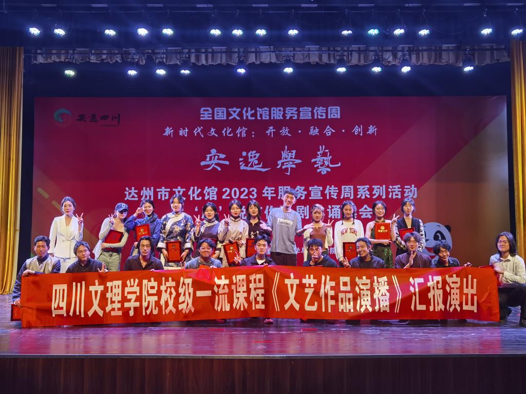 为深度加强校地合作,为学生提供更多更大的实践平台。5月22日下午,达州市文化馆和四川文理学院文学与传播学院联合举办的“安逸学艺”——达州市文化馆2023年服务宣传周系列活动“‘剧’说有你”剧本诵读会、四川文理学院校级一流课程《文艺作品演播》汇报演出在巴山大剧院成功演出。四川文理学院文学与传播学院副院长何斌、播音与主持艺术专业教师刘长宇、辅导员舒芳兰及文传学院2022级播音与主持艺术班级全体学生参与本次活动。