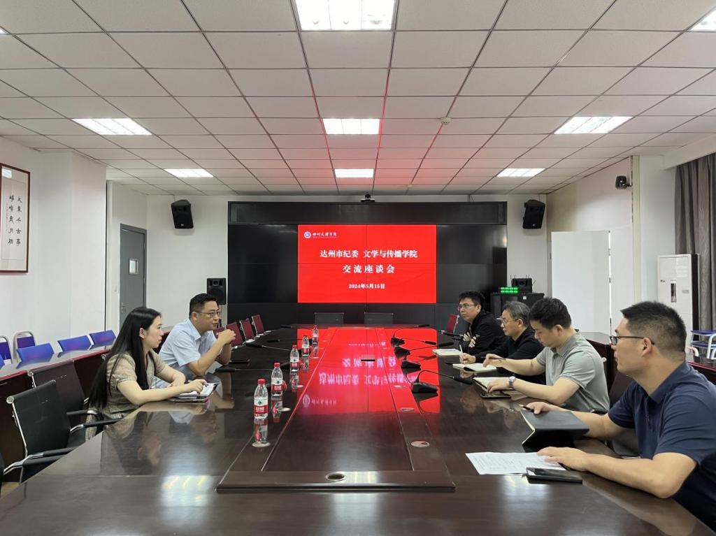 5月15日达州市纪委宣传部部长邱斌锋一行莅临文学与传播学院,与学院就实践教学合作育人、廉洁教育课程建设进行了深入座谈交流。