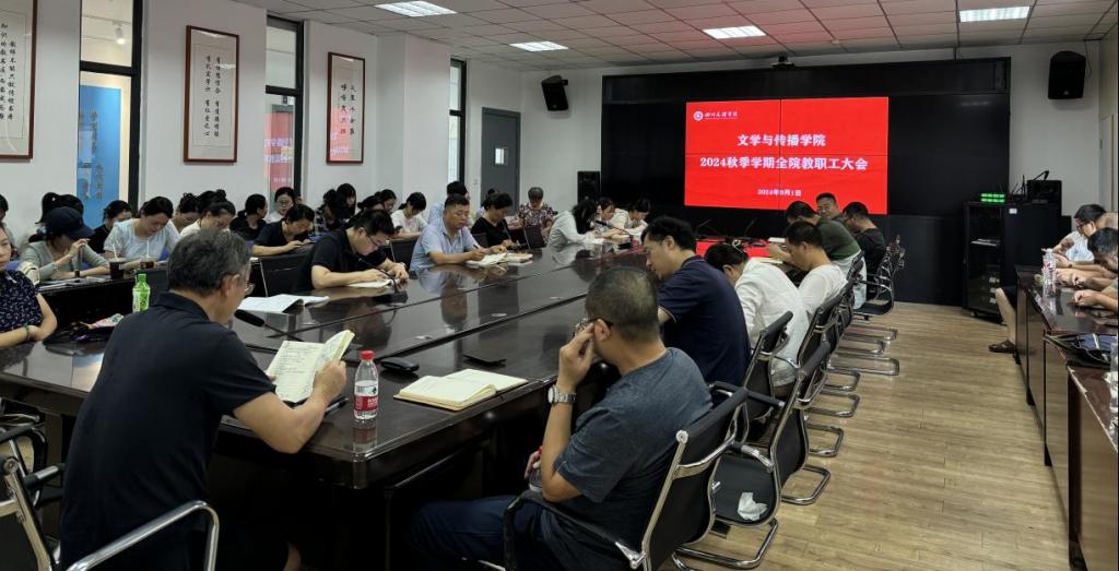 为有序做好2024年秋季学期开学工作。9月1日下午,文学与传播学院在艺术传媒大楼1007会议室召开2024年秋季学期全院教职工会议。学院院长曾宪文主持会议,全体教职工参会。