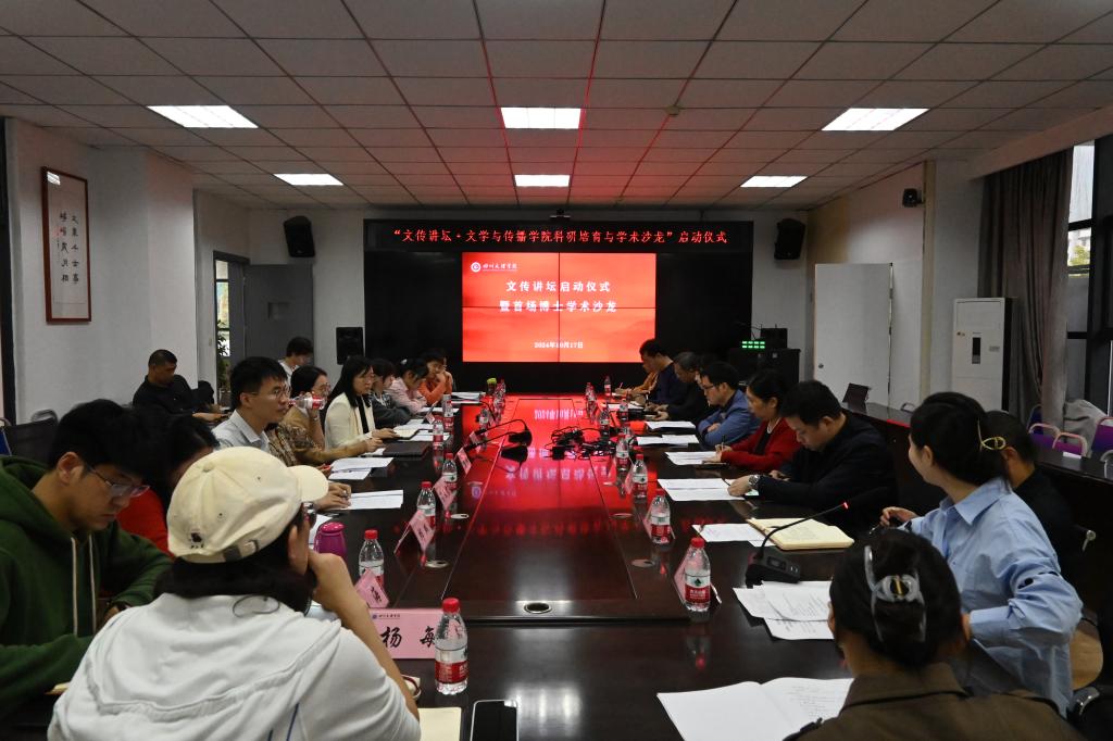启动仪式上,文学与传播学院院长曾宪文介绍了讲坛筹备情况以及举办的目的和意义。他表示,自学校实施塔石人才工程以来,学院通过内培外引,已有近20名博士充实到教师队伍。“文传讲坛”旨在为博士及科研骨干提供常态化科研交流平台,以学术沙龙形式分享自己的科研成果,并不定期邀请专家进行课题申报指导,使他们更快成长,产出高水平科研成果,助力学校申硕攻坚。副院长周丽对该讲坛运行机制及激励措施进行了介绍。她表示,讲坛包括学术沙龙、专题讲座、课题研讨等灵活多样的形式,学院会提供经费支持,完善激励措施,为讲坛提供条件保障。
