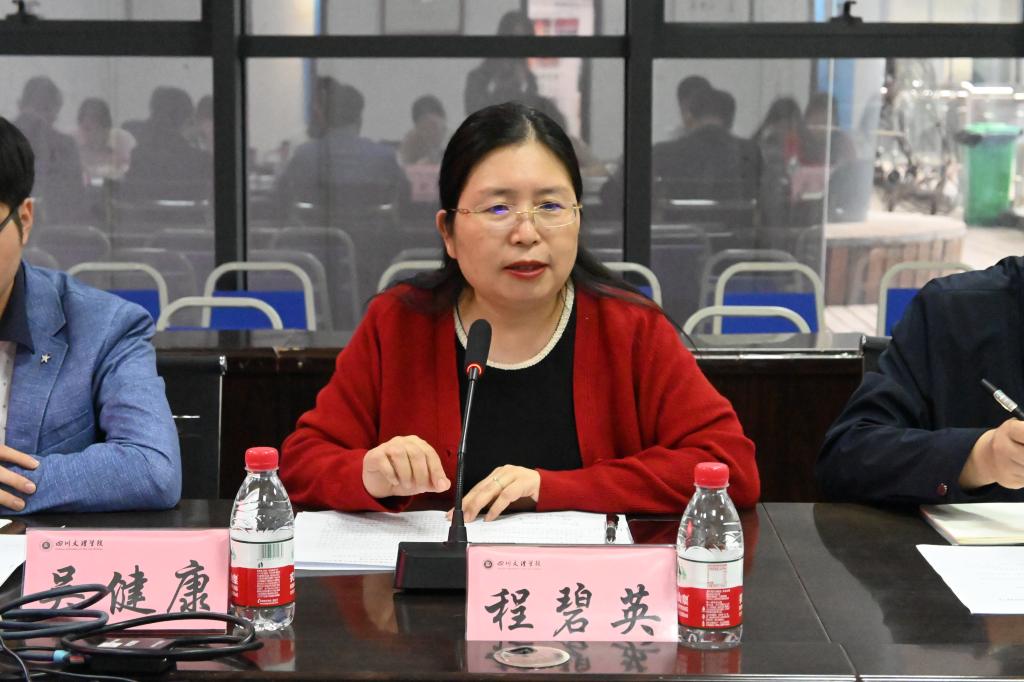 学校党委常委、副校长程碧英教授充分肯定了学院在申硕引博,科研建设方面的工作,她提到科研是学者的安身立命之本,要推进“有组织的科研”,以高质量科研项目为支撑,产出高水平研究成果。她希望大家充分利用好这一平台,积极开展学术交流与合作,不断提升自身的科研能力,为学科发展、学校建设以及时代需求,延伸不竭的学术生命。
