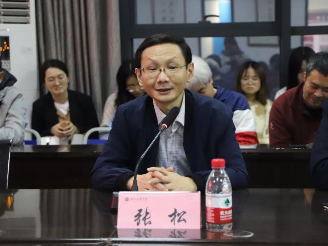 张松老师感谢学校领导的到来,以及学院领导和同事们多年来的支持和照顾。他总结了多年的工作经历,从欣慰、感谢、祝愿三个方面表达了自己的感想,并希望学校和学院能发展得越来越好,表示未来将继续发挥余热,为学校的发展作出贡献。