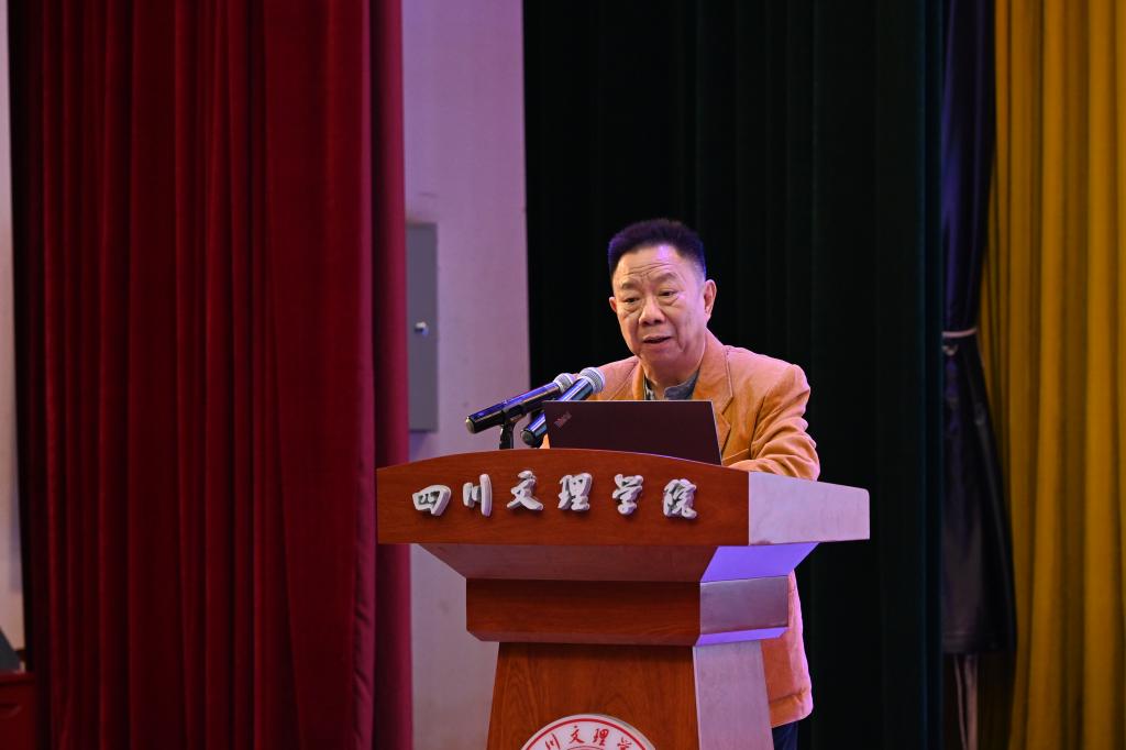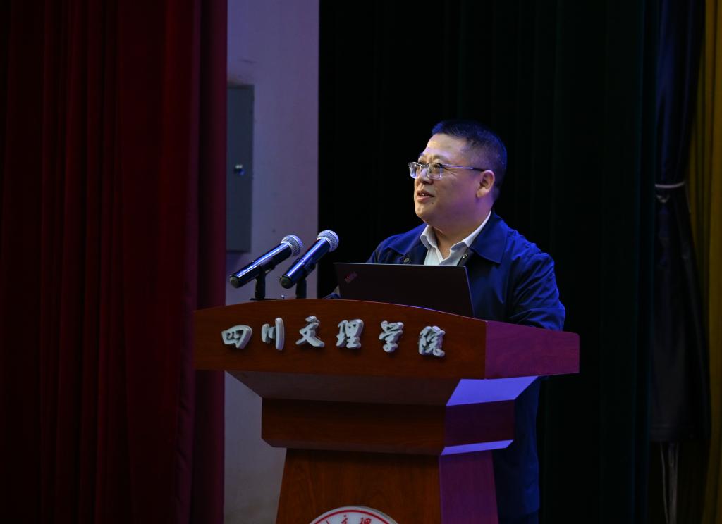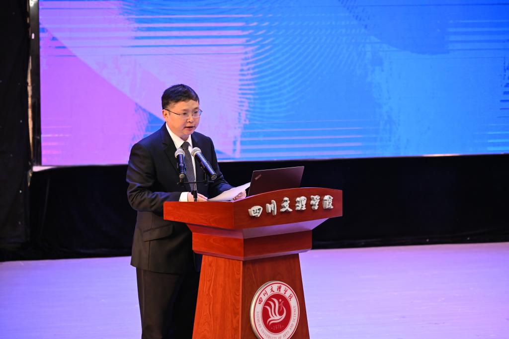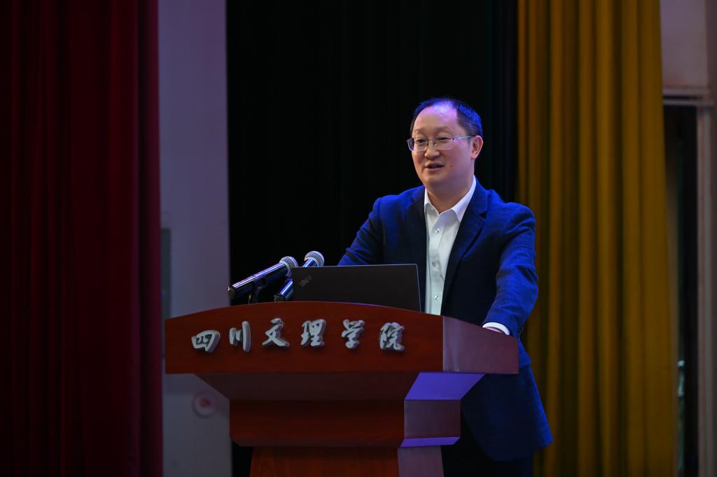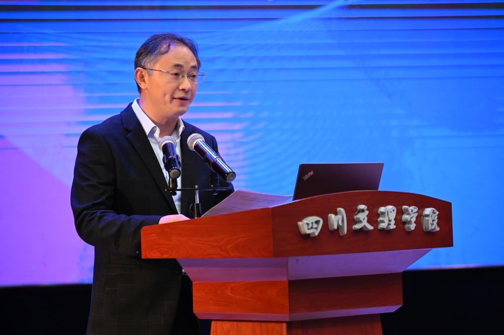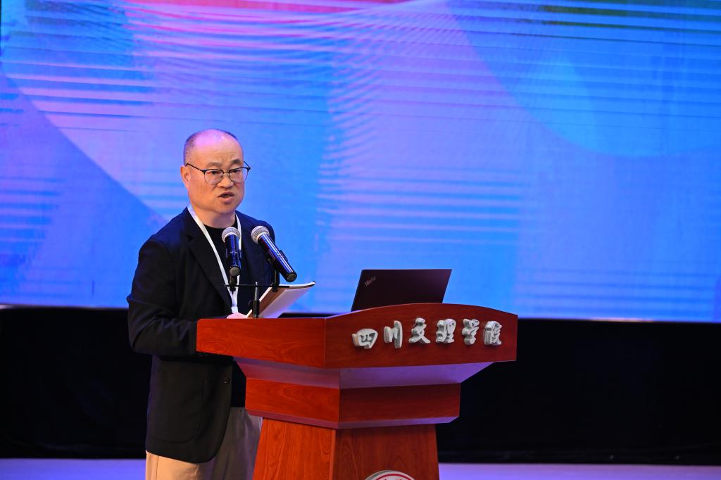 侯忠明在致辞中代表学校党委、行政对参会嘉宾表示欢迎,希望大家就会议的各个议题展开深入探讨和有效交流,共同探索人工智能与人文社科融合发展的新内涵、新路径和新方法,共同推动人工智能在四川文理学院教学、科研、人才培养等方面全面发展。