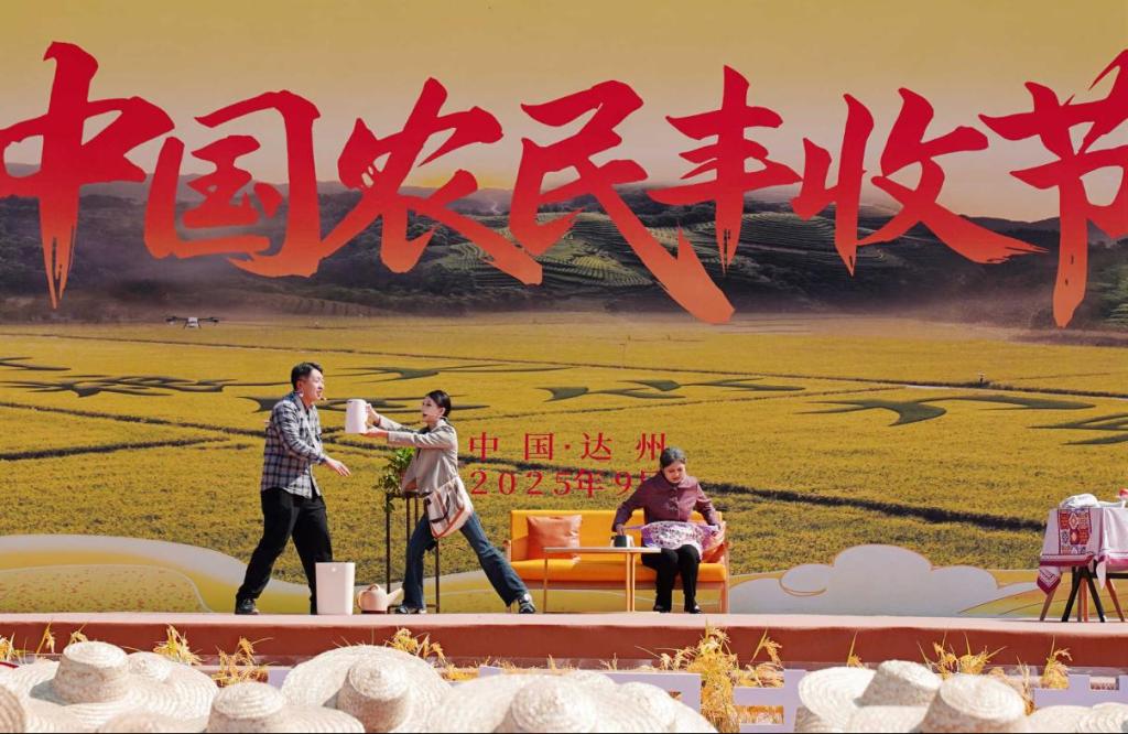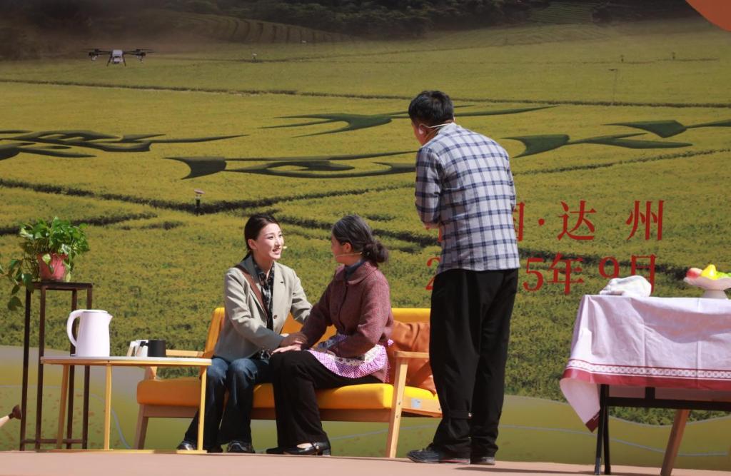 巴渠大地庆丰收,巴山水萃展新景。为庆祝第八个中国农民丰收节,9月23-24日,达州市2025年中国农民丰收节活动开幕式暨水产美食消费季活动启动仪式在大竹县乌木镇广子村举行。学院教师丁伟、宋美彤指导,学生周冠夫、周梓琛、屈雅美出演的乡村振兴题材小品《弄拙成巧》受邀参加开幕式演出。