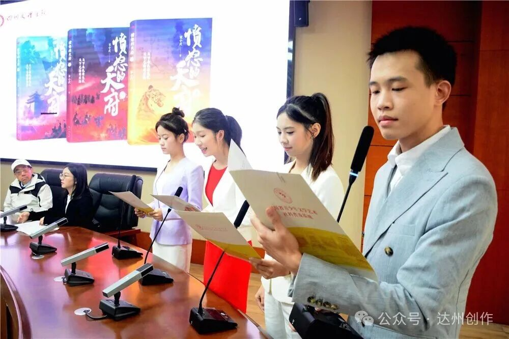 活动现场,达州市文艺创作中心向现场学子赠送了五十套《愤怒的天府》,宋小武为学子进行了签名赠书。