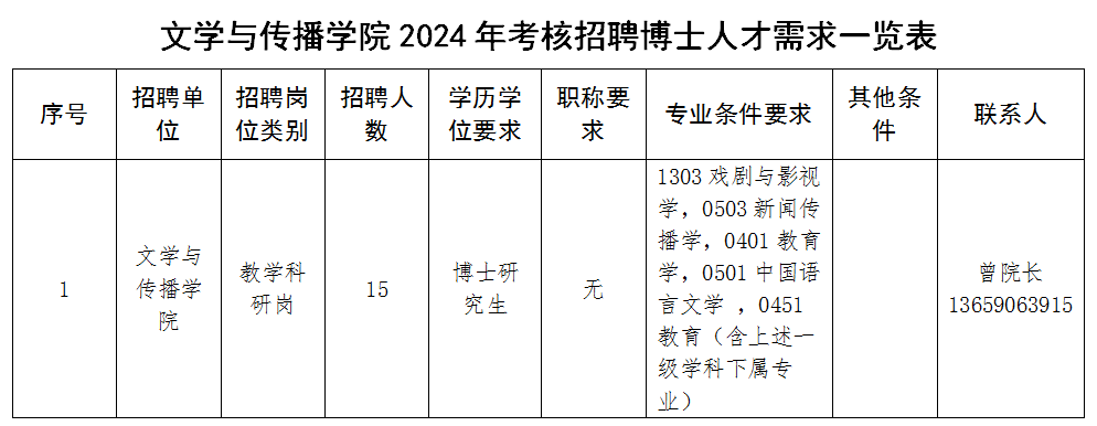 本次面向国内外招聘博士研究生人员,且同时符合《四川文理学院文学与传播学院2024年考核招聘博士人才需求一览表》(附件1)相关岗位要求和本公告其他要求的人员,包括以下几类(年龄计算截止时间2024年9月30日):