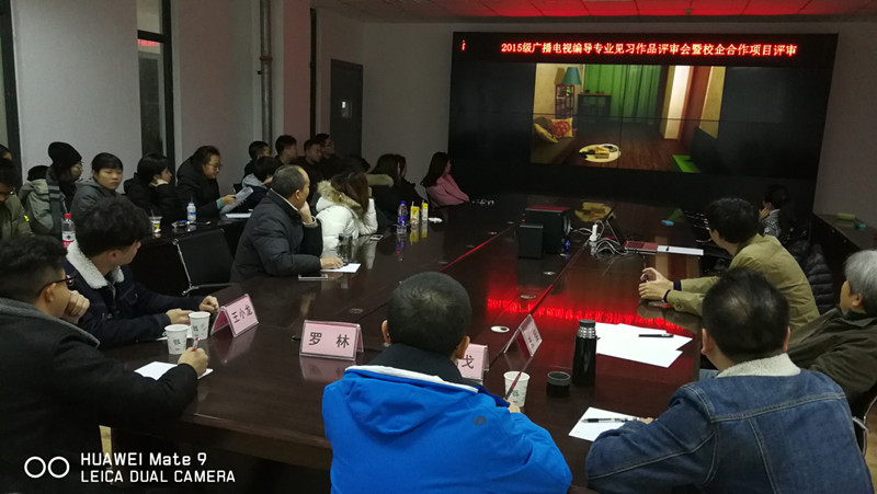 2017年12月9日上午8点半,2015级广播电视编导专业见习作品评审会暨校企合作项目评审活动在艺术传媒大楼文学与传播学院1007会议室进行。文学与传播学院党总支书记赵定贵、党总支副书记张桢、广播电视编导专业教研室老师安前进、何斌、王文东、邵康杰、秦二等参加了评审会。