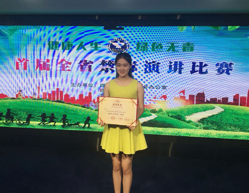 在四川省决赛现场有来自全省各大高校的选手,比赛现场异常激烈,火热非常。而我校选手罗琳,另辟蹊径通过演讲一则关于身边发生的小故事,在现场通过婉转而又生动的语言,再现了这则小故事。感动了在场的各位专家评委,最终经过各位专家以及评委的公正评判,罗琳以小组第一的优秀成绩勇夺桂冠。将会代表四川省出战全国的禁毒演讲比赛,面临全国各省市高校的比拼,为学校获取更高的荣誉。