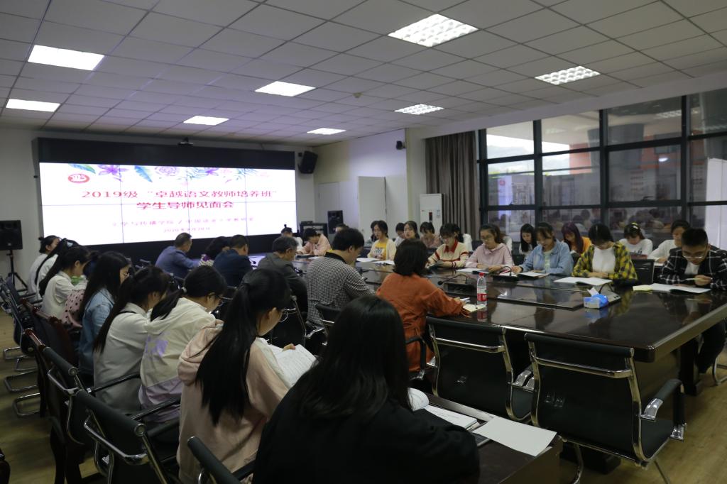 9月28日下午,我院在艺术传媒楼1007会议室召开了2019级“卓越语文教师培养班”学生导师见面会。院长曾宪文教授、卓培学生导师、2019级卓培班30名学生参加会议,中国语言文学教研室主任成立副教授主持会议。