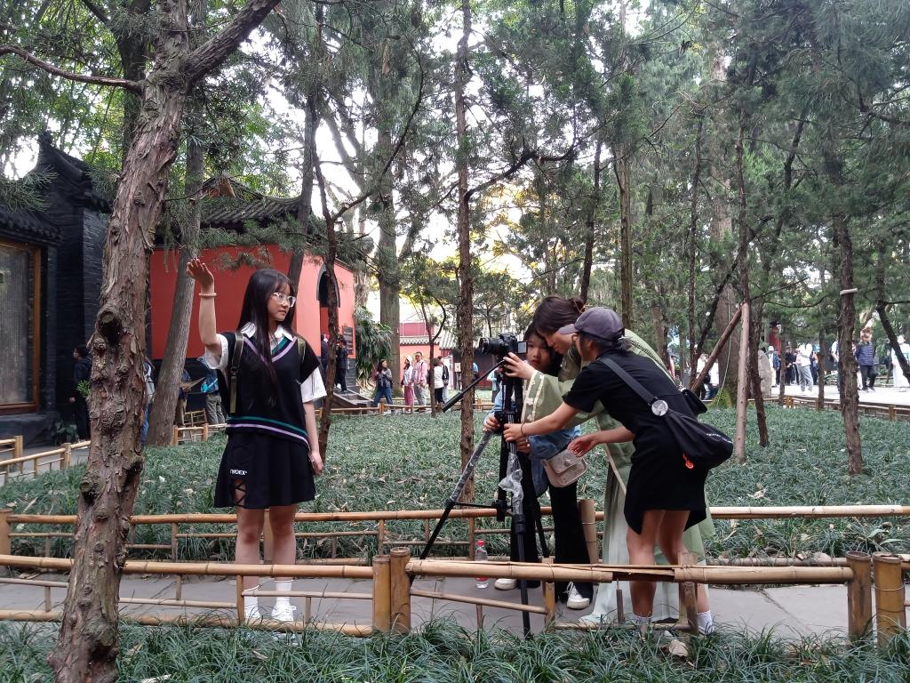 活动期间,带队老师积极组织学生有序、规范开展见习,并从选题策划、创作构思、拍摄技巧等多方面进行指导,各小组学生按照见习计划,分别到大雁塔、碑林博物馆、天府农博导、武侯祠、杜甫草堂等地进行作品创作。