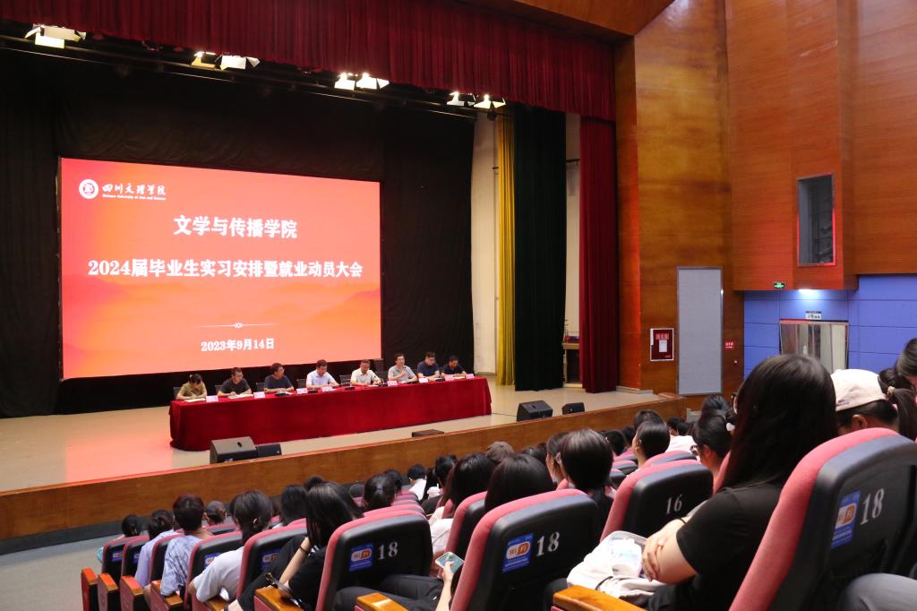 9月14日晚,我院在艺术传媒楼多功能厅举行2024届毕业生实习安排暨就业动员大会。会议由副院长何斌主持,学院领导、各教研室主任及毕业班辅导员出席会议,2024届全体毕业生参会。