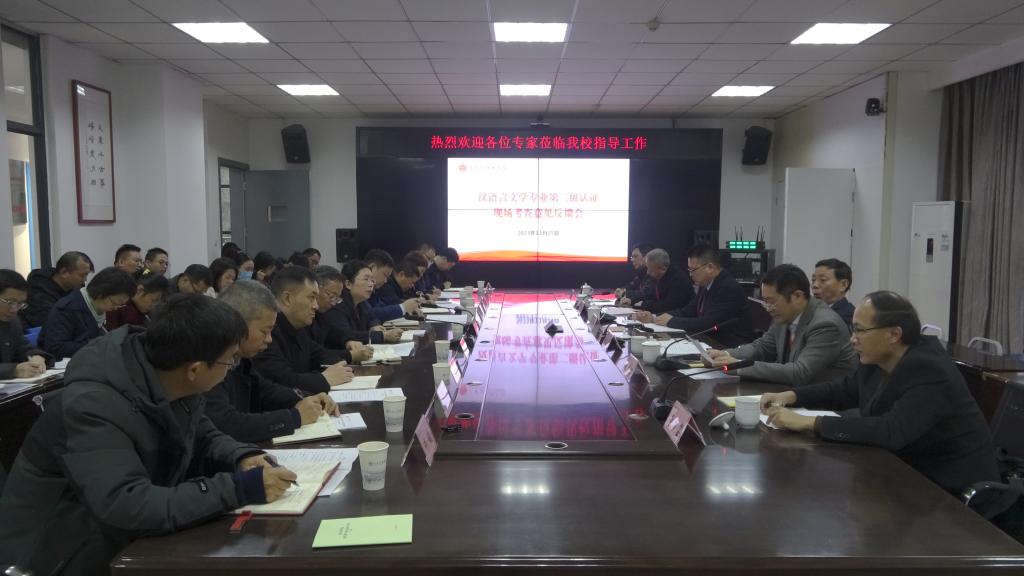 2023年11月25日上午,文学与传播学院汉语言文学专业第二级专业认证现场考查意见反馈会在艺术传媒大楼1007会议室顺利召开。专家组成员,学校党委常委、副校长程碧英,学院领导班子、管理干部、汉语言文学专业全体教师参会。