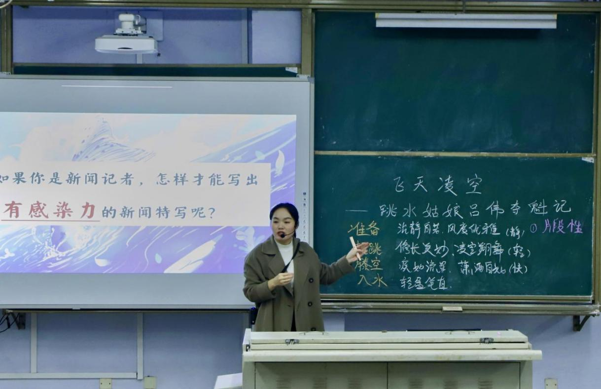 11月19日下午,顾亚平老师讲授了课文《飞天凌空》。她通过阅读、提问、总结等方式,剖析了文本精妙之处,引导同学们领略运动员的英姿,让同学们感受到了新闻特写的生动性和准确性。