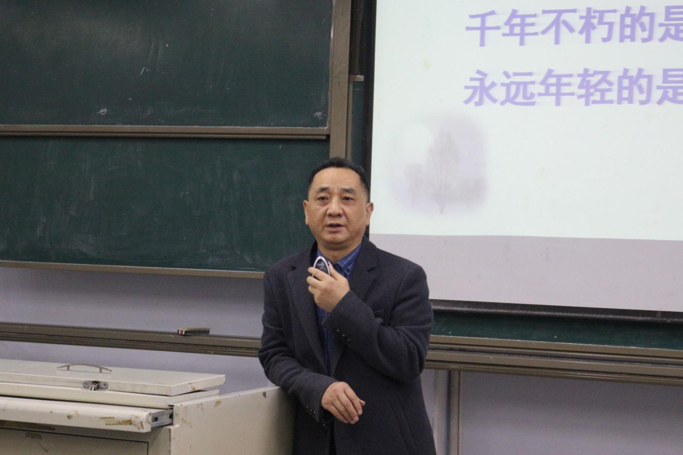尹伊君老师作了题为《千秋如晤——浅谈中学语文诗歌鉴赏教学》的讲座。她通过对诗歌鉴赏的意义、语文核心素养四者的关系、新课标对诗歌鉴赏的要求、教学组织方式的变化等四方面内容的讲解,让同学们对新课标改革有了深刻的认识。