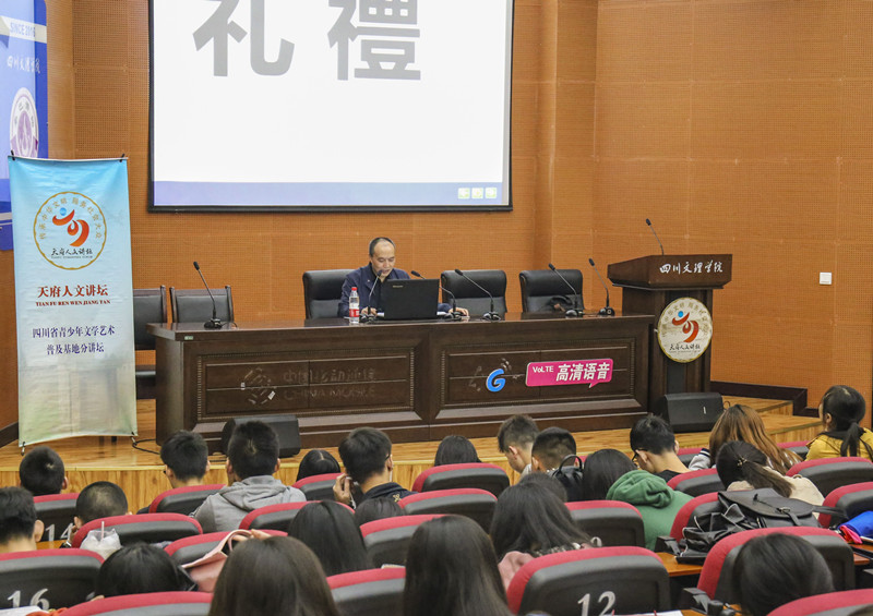 2017年10月11日晚,四川文理学院文学与传播学院党总支书记赵定贵研究员于莲湖校区学术报告厅B厅作“从汉字的构造谈‘礼仪’的本质与内涵”的专题讲座。此次讲座由省文学艺术普及基地主任、文学与传播学院副院长彭金祥教授主持,学校学术委员会委员、学术带头人汪成慧教授等老师出席了此次讲座。文传学院两百余名学子到场聆听讲座。