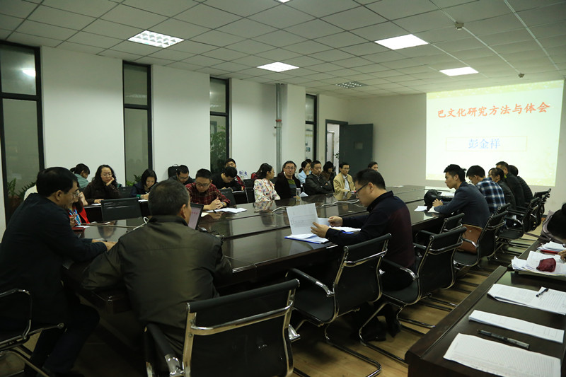 讲座主题为“巴文化研究方法与体会 ”,彭教授首先分析了为什么研究巴文化,研究巴文化的意义,然后对巴文化特征进行了详细介绍,理清巴文化源流,研究巴人的社会生活、文化交流、丧葬制度、生产资料等方面的特点,指出巴人创造的文化与其他文化的区别与联系,阐明巴人的活动区域,为开发、保护巴文化景观、发展达州等川东地方旅游经济服务。他详细介绍了申报的几个科研课题和发表的几篇文章,在此基础上,梳理了巴文化研究现状和研究方法,深入分析了巴文化的保护措施,指出巴文化研究的困难,主要是文献资料的欠缺,告诉大家可以通过一些特殊的方法进行研究,如实地考察、考古发掘报告、民风民俗和从土家族现状出发倒推等等,并与参会教师就巴人的都城、巴人语言、巴人与賨人的关系等问题进行了深入的探讨与交流 ,耐心回答了老师们的提问。