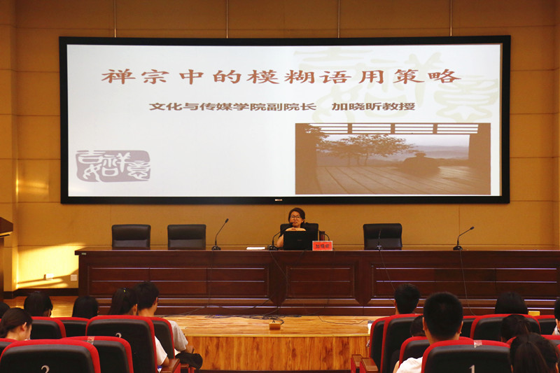 为夯实学生的文化积淀,加深学生对禅宗文化的了解,6月16日晚,文传学院副院长加晓昕教授在莲湖校区学术报告厅A厅作了题为 “禅宗中的模糊语用策略”的学术讲座,学院党总支副书记张桢、政治辅导员邓超及文传学院部分同学聆听了讲座。张桢副书记主持讲座。