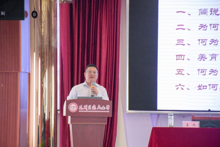10月14日,四川省李勇名师工作室在达州市达川区逸夫小学举行揭牌仪式。达川区委常委、宣传部长赵运登,达川区教育工委书记、教育局党组书记、局长唐澜,达州市教科所副所长郑煜,四川省首届名校长工作室领衔人、通川区七小新锦学校校长王仕斌和来自全省15个市州的近100名工作室成员参加揭牌仪式。我院姜约博士应邀在揭牌仪式上为参会人员做《美育与全人培养》的学术报告。