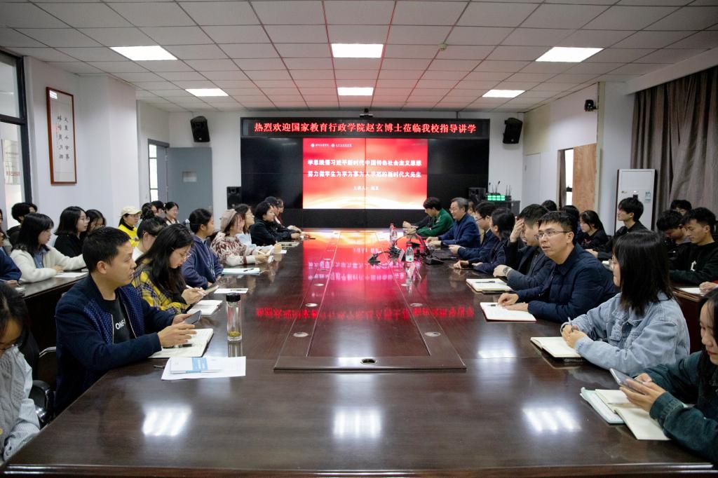 为加强师范专业人才培养,11月10日下午,文学与传播学院邀请国家教育行政学院赵玄博士来校作“学思践悟习近平新时代中国特色社会主义思想,努力做学生为学为事为人示范的新时代大先生”学术讲座。学校党委常委、副校长程碧英,文学与传播学院领导、相关老师以及卓越语文教师培养班学生代表参加本次活动。