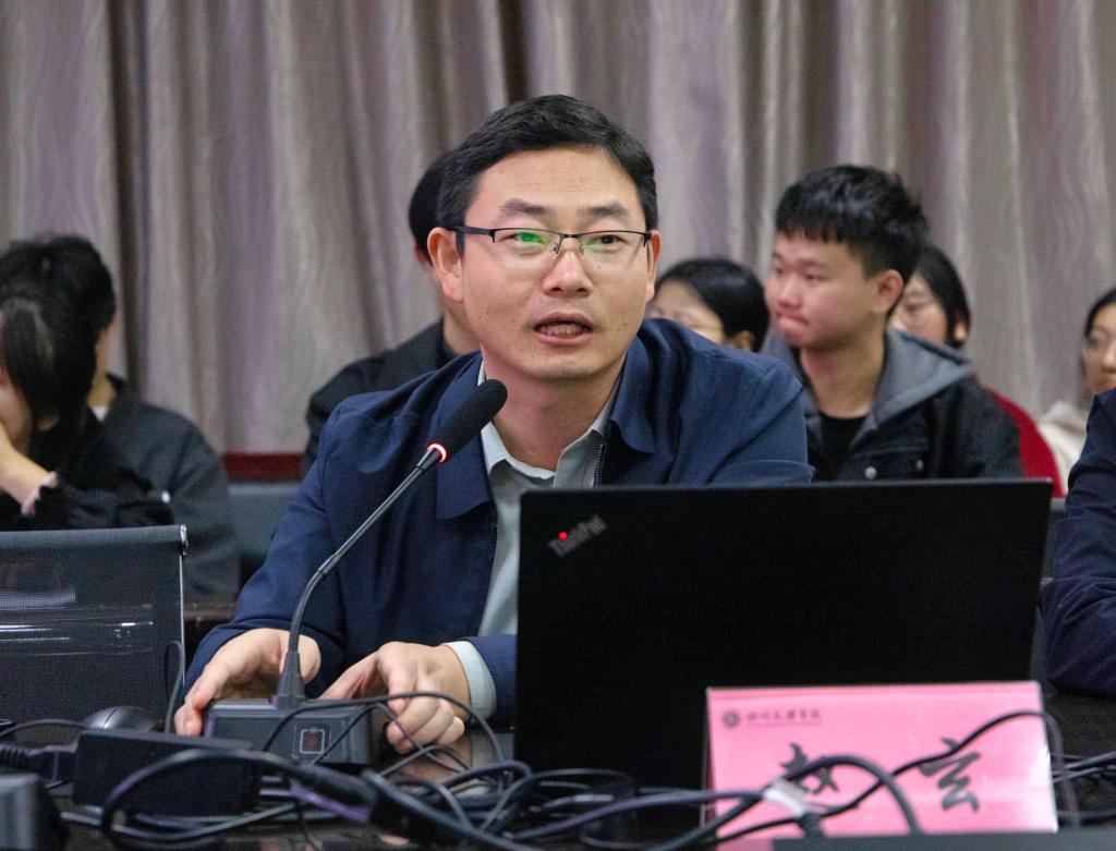 赵玄博士首先宏观介绍了习近平新时代中国特色社会主义思想的主要内容,然后将习近平总书记“家庭生活、知青岁月、求学道路、军队工作、为政经历”概括为“五所学校”进行了阐释,向同学们提出从学习习近平总书记的人生经历中思考、践行、领悟习近平新时代中国特色社会主义思想的发展脉络和精髓要义。在讲述习近平新时代中国特色社会主义思想对教育工作的重要指导意义时,赵玄博士结合中国特有的教育家精神,分享了全国优秀教师的先进事迹,他强调教育工作者要紧跟时代步伐,不断更新教育观念,激励师生要以优秀教师为榜样,不断提升师德素养和教学能力。在与同学们的互动交流中,他提出做一个卓越教师要做到“跟着党走、明确目标、打好基础”,教师作为学生的引路人,不仅要教授学生知识,更要教会他们如何做人,培养全面发展的人才,同时也要注重教师自我发展的重要性,教师要有自我提升的意识,不断学习和进步。