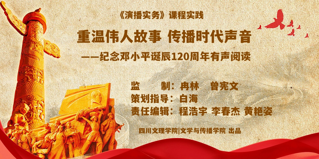 白海教授创编的《重温伟人故事,传播时代声音》有声书,正在《演播实务》课程中进行推广应用。该有声书通过回顾邓小平同志的生平,展现了他在中国革命和新中国成立后的卓越领导能力和远见卓识。并呼吁当代青年铭记历史,继承和发扬老一辈革命家的精神品质,为实现中华民族的伟大复兴贡献力量。