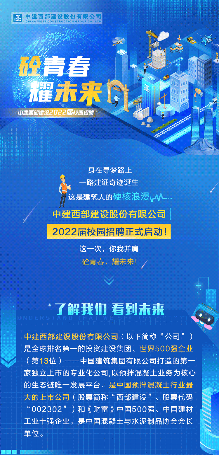 中建西部建设股份有限公司2022届校园招聘正式启动!(川文理就[2022]0182)