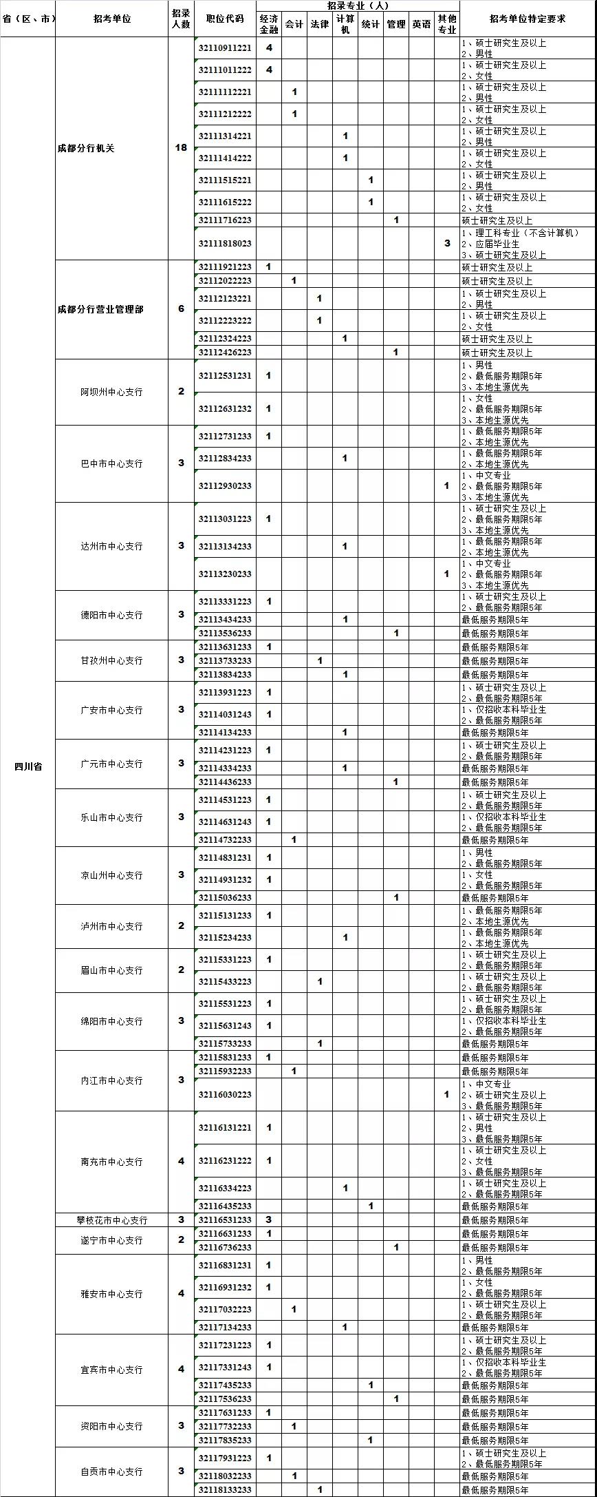 四川分行岗位多!中国人民银行分支机构和部分所属单位2022年度人员录用招考(招聘)公告